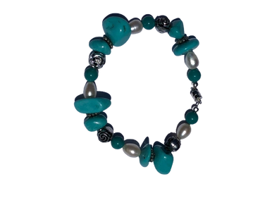 Add some flair to your outfit with this turquoise beaded bracelet. Find it and other styles in the Bracelet section.